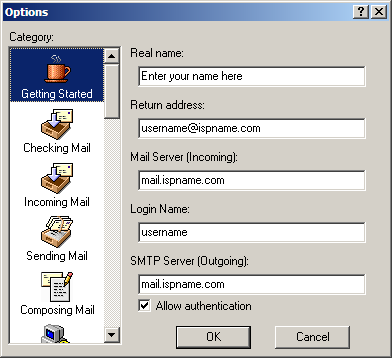 The Outgoing (SMTP) mail server usually follows this format: mail.ispname.com