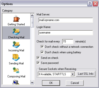 To the right, you can enable Eudora to check for e-mail messages in different time increments. While you're on line, Eudora will verify if you've received e-mail.