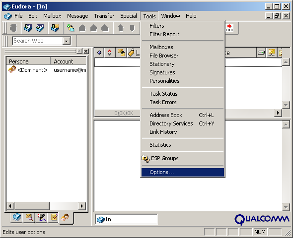 In Eudora, e-mail accounts are referred to as personalities, and editing them is just like creating them.