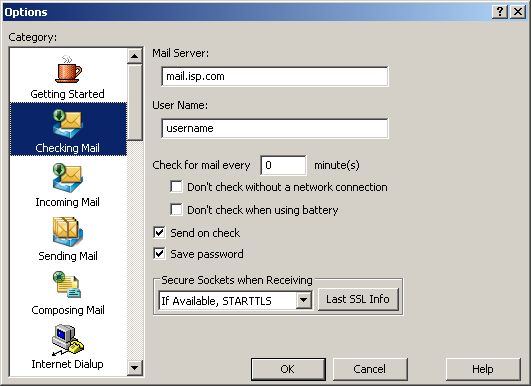 In the left-hand column, highlight Checking Mail.