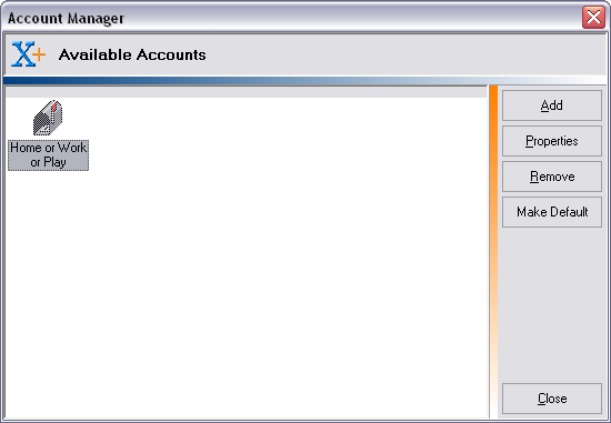 On the Toolbar, click Accounts and select Manage Accounts from the menu.