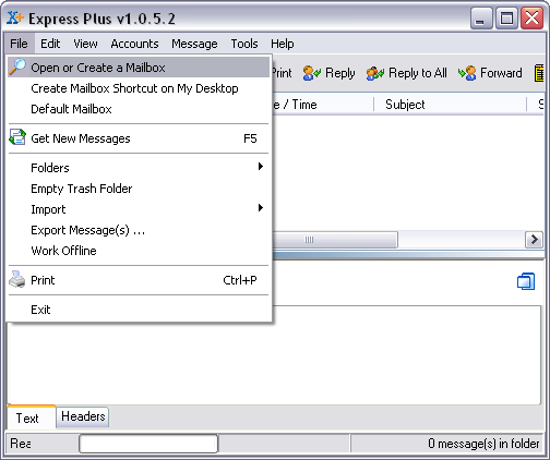 On the Toolbar, click File and select Open or Create a Mailbox from the menu.