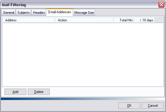 Click OK to exit the 'Mail Filtering' window.