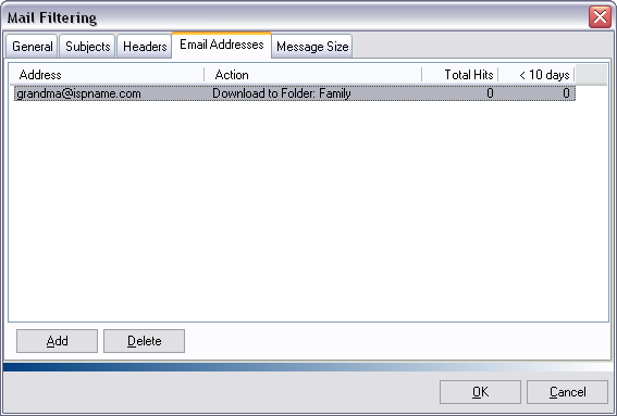 Now Express Plus will place any e-mails that come from 'grandma@ispname.com' into the 'Family' folder.