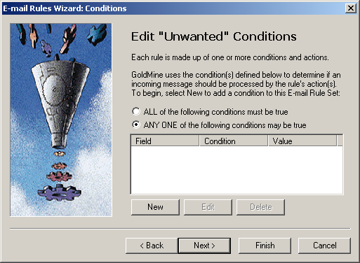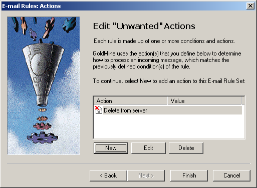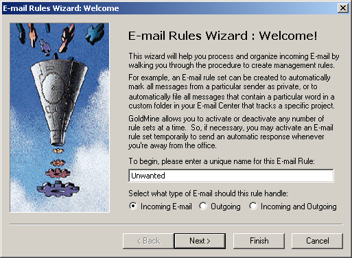 In this example we'll create a message rule that will allow Goldmine to automatically delete certain unwanted e-mails.