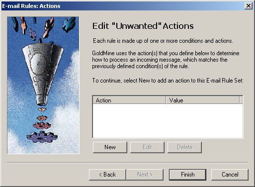 Now we'll assign an action to the rule, or in other words, we'll tell Goldmine what to do with certain e-mails.