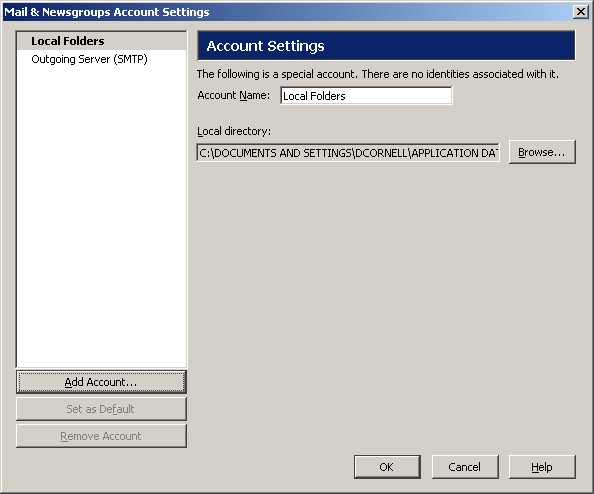 The Mail & Newsgroups Account Settings window opens.