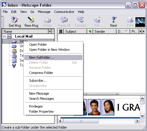 To create a folder in Netscape Messenger (Mail), you must first have Netscape Messenger open.