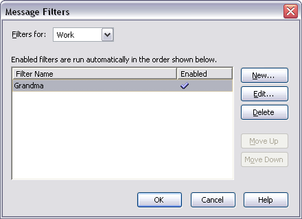 Now, any e-mail message that has the Sender field containing Grandma will be moved automatically to the Family folder.