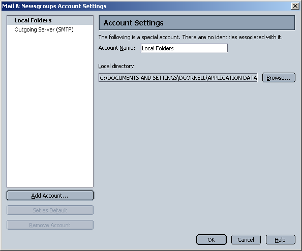 Account Name = Enter a name for the e-mail account. It doesn't matter what you call it, but it should be distinctive. This will help you distinguish it from any other e-mail accounts you create.