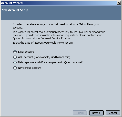 To create a new e-mail account in Netscape 7.X, follow these steps: