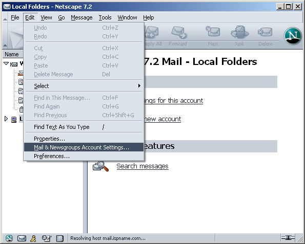 On the Toolbar, click Edit and select Mail & Newsgroups Account Settings from the menu.