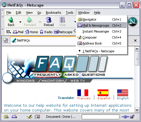 On the Toolbar, click Window and select Mail & Newsgroups from the menu.