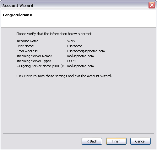 Incoming Server = The Incoming (POP3) mail server usually follows this format: mail.ispname.com (or .net). Replace the "ispname.com (or .net)" with your ISP's name.