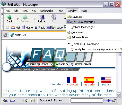 On the Toolbar, click Window and select Mail & Newsgroups from the menu.