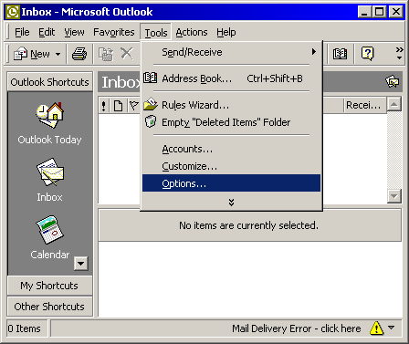 There are a few options in Outlook 2000 that are worthy of note: auto-e-mail check, auto-disconnect, and e-mail attachments. These options can be useful as well as annoying.
