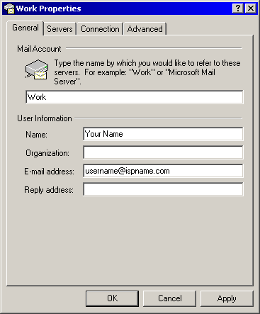 Mail Account = Give the mail account a name. It doesn't matter what you call it; however, if you have more than one account (Work, Personal, Mom, Dad, Junior, etc.), you'll want to be descriptive. I gave this one mail.ispname.com.