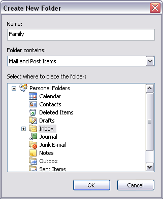 To make the new folder a subfolder of your inbox, highlight "Inbox".