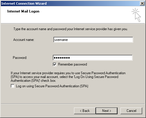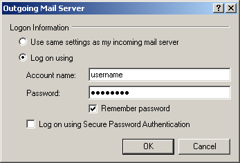 Important: Do NOT select Log on using 'Secure Password Authentication'.