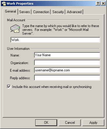 Mail Account = You can give the name of the mail account anything you'd like. In this example, I gave the account the name 'Work'.