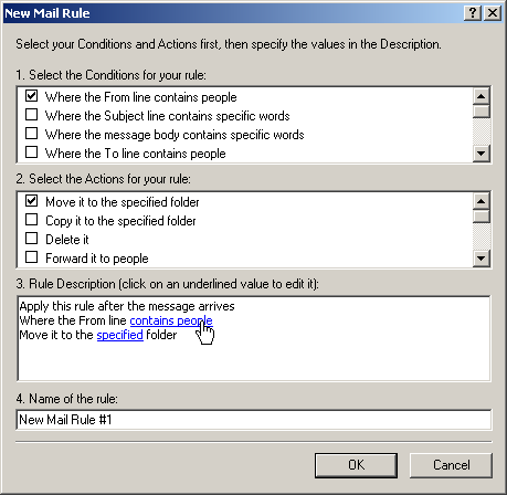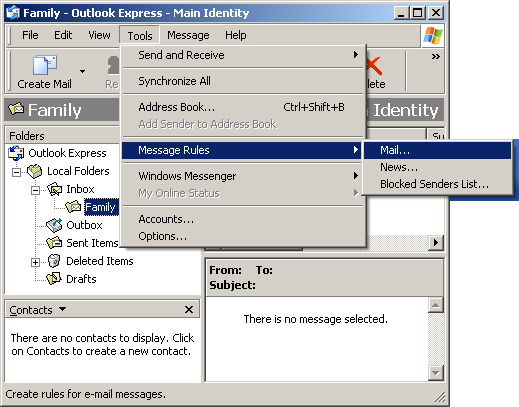 In this example we'll create a message filter that will allow Outlook Express to automatically send e-mail to a specified folder.