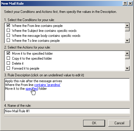 In the fourth field, give the rule a name. In this example, I gave the rule the name 'Grandma'.