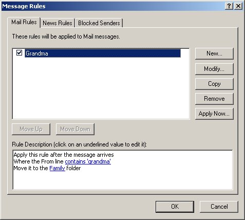 Message rules can help you organize your e-mail messages as well as delete unwanted messages automatically. They work in conjunction with folders. To learn how to create folders, click the 'Folders' link above.