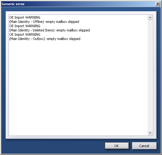 If any of the mailboxes, i.e., Inbox, Outbox, Drafts, Deleted Items, etc. are empty, you'll receive this generic warning. This means Opera can't import anything because there is nothing in these mailboxes to import.