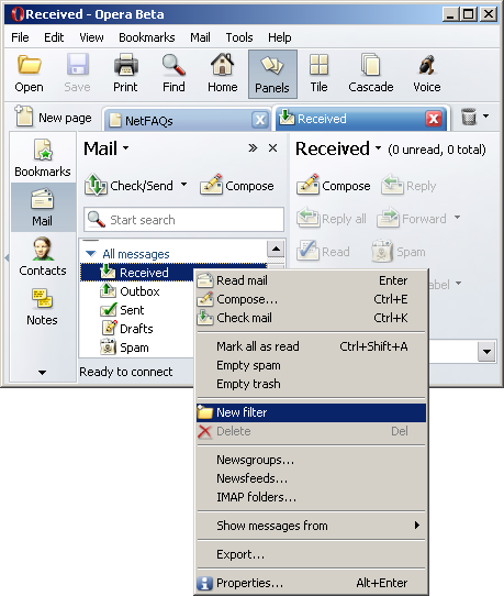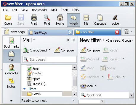 In Opera 8, folders are referred to as filters perhaps because the two work closely together.
