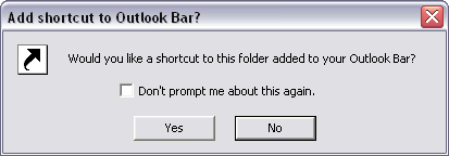 If you'd like the folder to appear in your Outlook Bar, click 'Yes'. Otherwise, click 'No'.