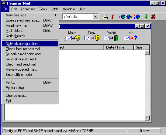 The following tutorial discusses how to configure a new e-mail account in Pegasus 3.12c. Do the following: