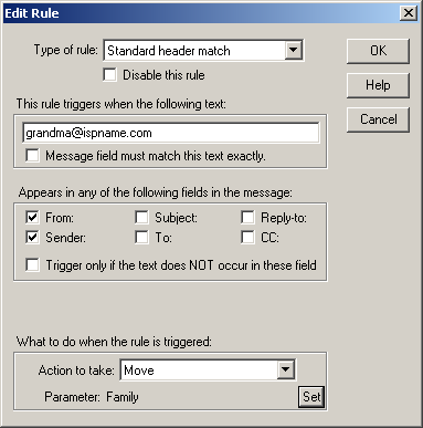 Double click the mail folder to which you'd like to send the messages that follow this rule.