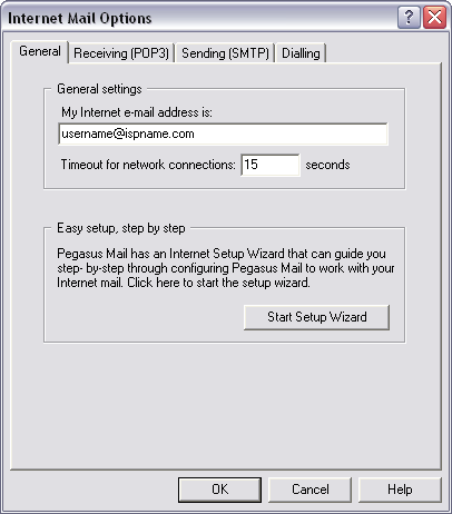 General settings for receiving mail via POP3: