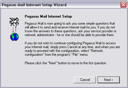 The first time you start Pegasus the following wizards launches: