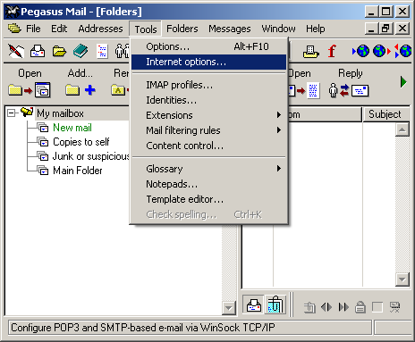 The Internet Mail Options window opens.