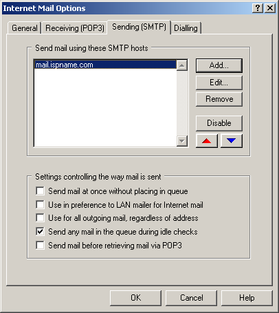 The Settings for sending mail (SMTP) appears.