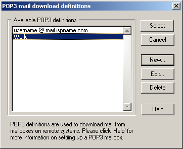 We return to the POP3 mail download definitions screen.