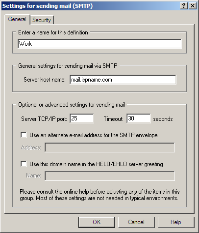 Server host name = The Outgoing (SMTP) mail server usually follows this format: mail.ispname.com (or .net). Replace the "ispname.com (or .net)" with your ISP's name.