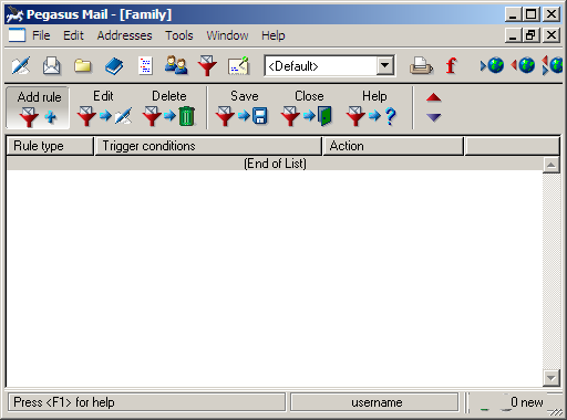 On the Toolbar, click Tools, select Mail filtering rules, and then Create/edit general rule set from the pop-out menu.