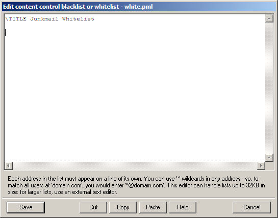 Note: This list supports up to 32KB only. If you exceed this limit, you'll need to create the list using Notepad, Wordpad, or any external text editor. You'll then need to point to the list using the Browse button in the previous window.