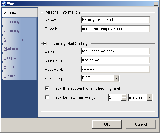 The Incoming (POP3) mail server usually follows this format: mail.ispname.com