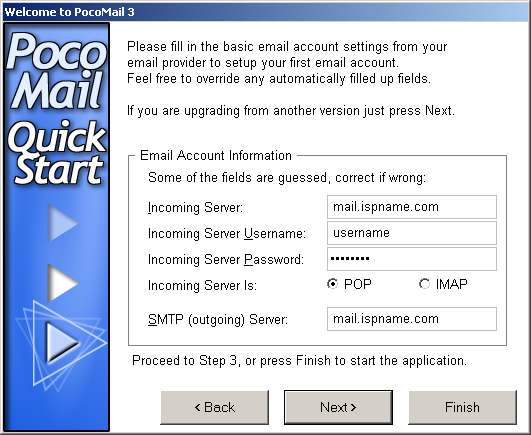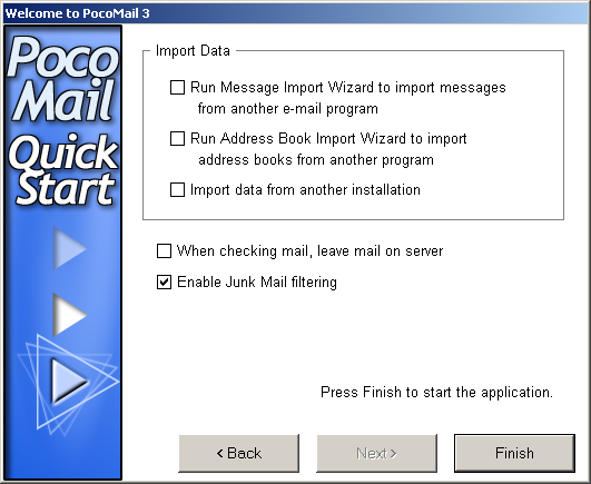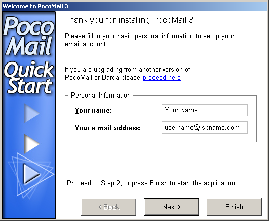 The first time you start PocoMail the following set-up wizard launches: