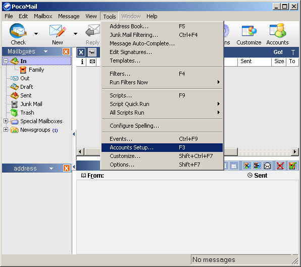 On the Toolbar, click Tools and select Accounts Setup from the menu.