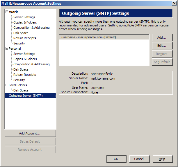 Outgoing Server (SMTP) settings: