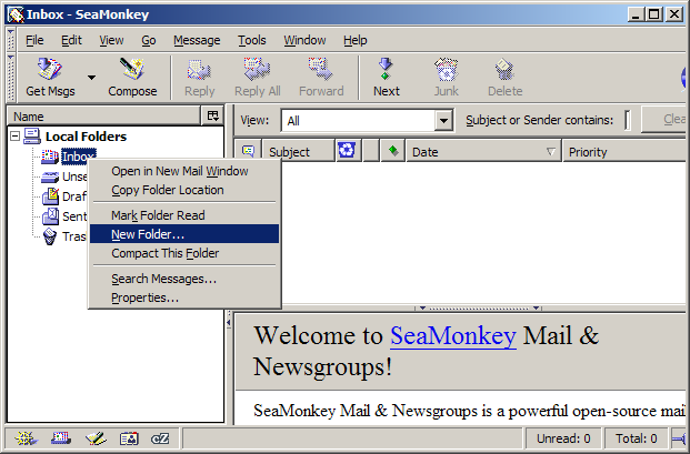 Creating folders helps you to organize your e-mail.  Certain types of e-mail messages can be placed in the folders you create.  Folders work well with Message filters.