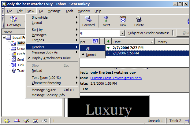 Headers are the e-mail addresses of the senders or recipients, date/time of the e-mails, subjects, etc. You can use headers to decipher who is really sending you e-mails. If you receive spam, you can locate the headers of the message and send them to your Internet service provider. They can then contact or black list the ISP from which the e-mails originated. The following tutorial explains how to locate all the message headers.