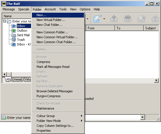 Folders can be helpful in organizing your e-mails. Different types of e-mails can be placed in specified folders. Folders work in conjunction with filters. Filters can automatically send messages to certain folders. This can be especially helpful if you're the kind that never deletes e-mails. To learn how to create filters, click on the 'Message Filters' link above. To create a folder, do the following: